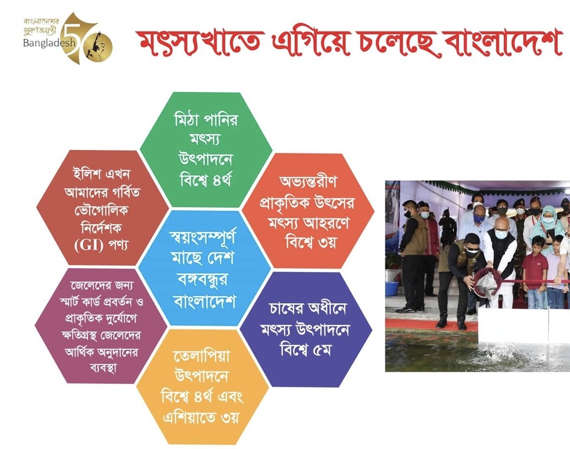 প্রাকৃতিক মাছ উৎপাদনে বর্তমানে বাংলাদেশের অবস্থান ৩য় ও মাছ উৎপাদনে ৪র্থ